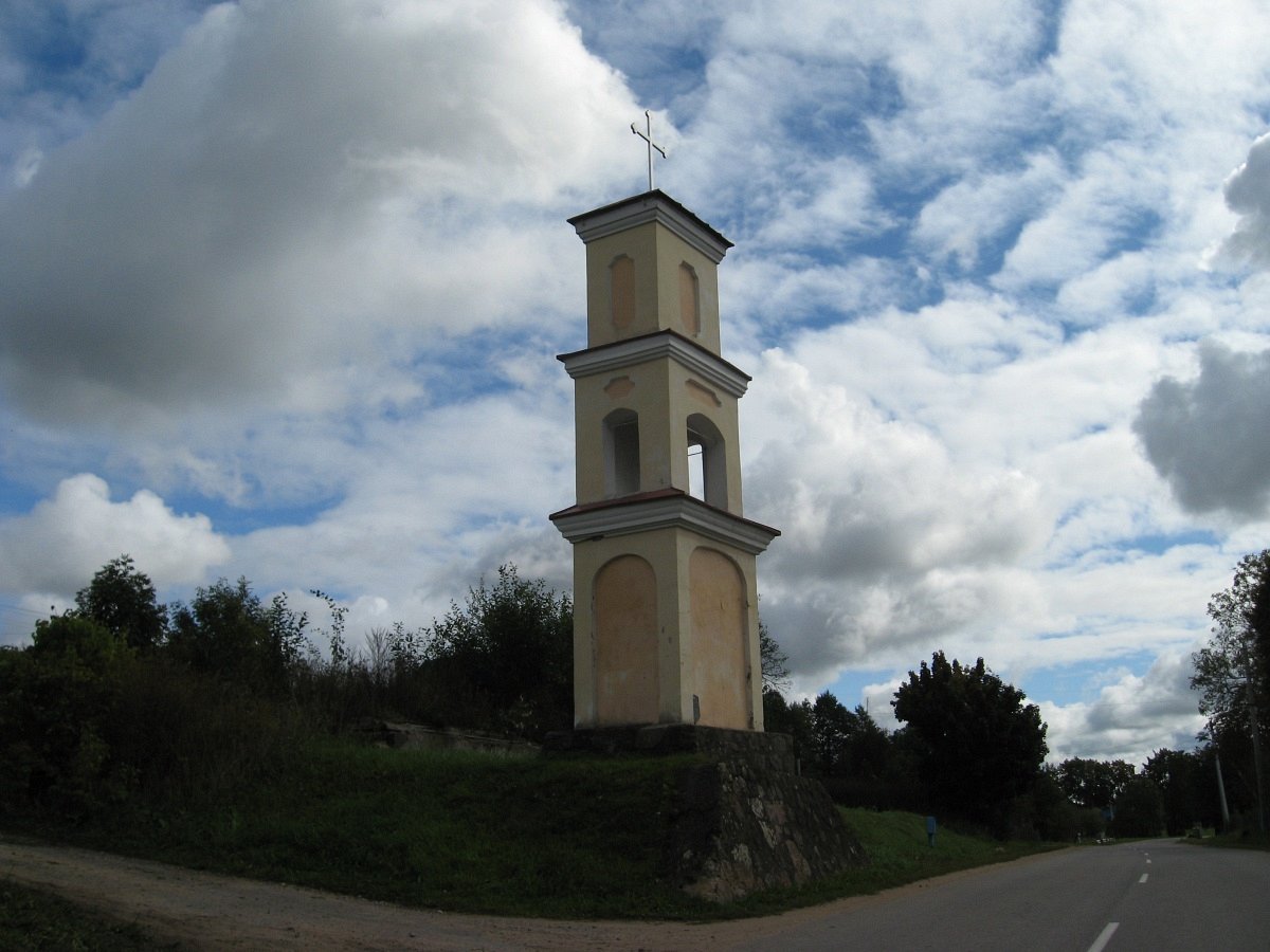 Памятник архитектуры неоклассицизма. Представляет собой трехъярусную четырехугольную башню под шатровой крышей с крестом. Стены оштукатурены. Ярусы разделены профилированными карнизами. Грани первого и верхнего яруса оформлены нишами, средний ярус имеет сквозные арочные проемы. Внутри установлена деревянная скульптура Иисуса Христа.
